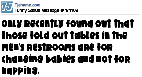 X says Only recently found out that those fold out tables in the men's restrooms are for changing babies and not for napping.