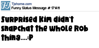 X says Surprised Kim didn't snapchat the whole Rob thing....:P