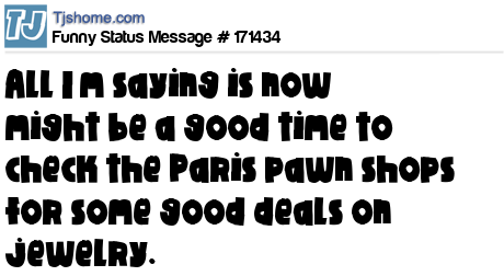 X says All I’m saying is now might be a good time to check the Paris pawn shops for some good deals on jewelry.