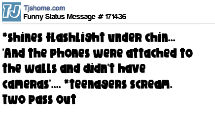 X says *shines flashlight under chin... 'And the phones were attached to the walls and didn't have cameras'.... *teenagers scream. Two pass out