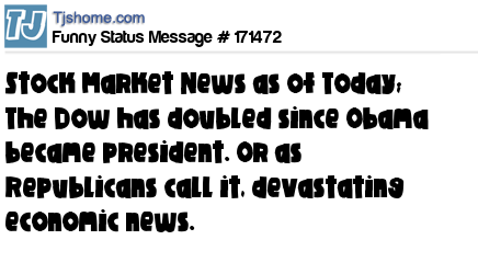 X says Stock Market News as of Today; The Dow has doubled since Obama became president. Or as Republicans call it, devastating economic news.
