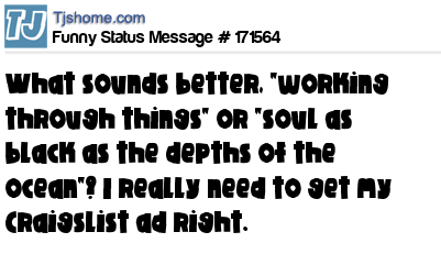 X says What sounds better, "working through things" or "soul as black as the depths of the ocean"? I really need to get my Craigslist ad right.