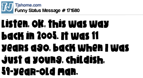X says Listen, OK, this was way back in 2005. It was 11 years ago, back when I was just a young, childish, 59-year-old man.