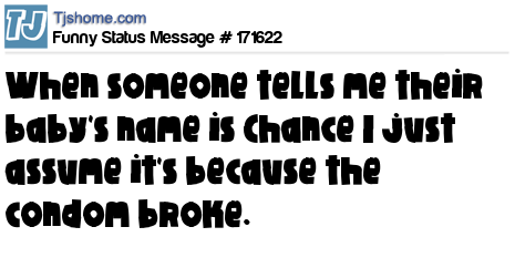 X says When someone tells me their baby's name is Chance I just assume it's because the condom broke.