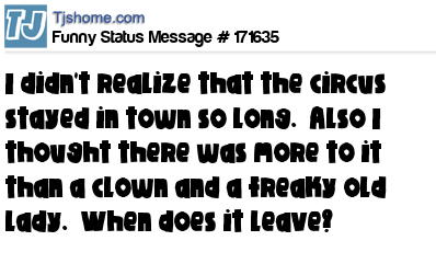 X is I didn't realize that the circus stayed in town so long. Also I thought there was more to it than a clown and a freaky old lady. When does it leave?