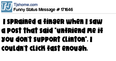 X says I sprained a finger when I saw a post that said "unfriend me if you don't support Clinton", I couldn't click fast enough.