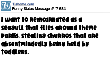 X says I want to reincarnated as a seagull that flies around theme parks, stealing churros that are absentmindedly being held by toddlers.