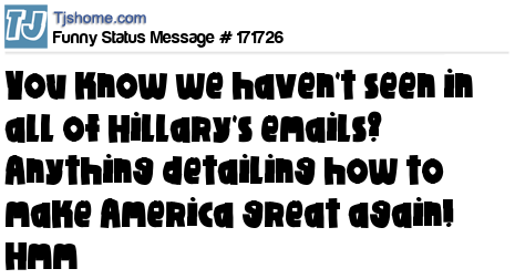 X says You know we haven't seen in all of Hillary's emails? Anything detailing how to make America great again! Hmm