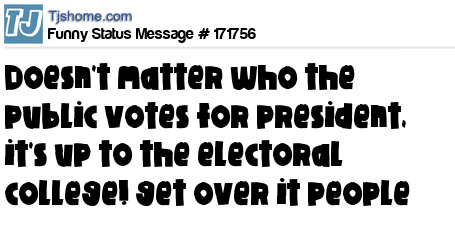 X says Doesn't matter who the public votes for president, it's up to the electoral college! get over it people