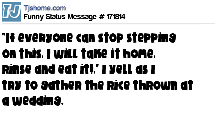 X says "If everyone can stop stepping on this, I will take it home, rinse and eat it!," I yell as I try to gather the rice thrown at a wedding.
