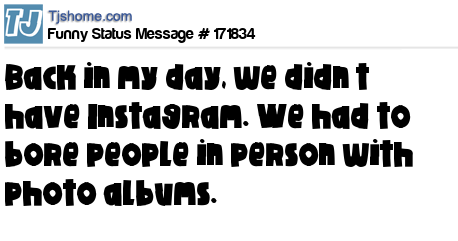 X says Back in my day, we didn’t have Instagram. We had to bore people in person with photo albums.