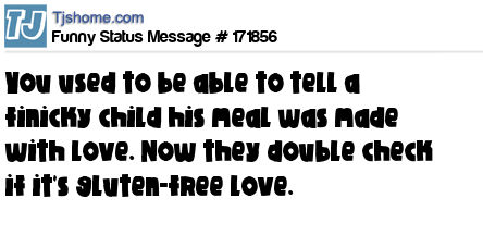 X says You used to be able to tell a finicky child his meal was made with love. Now they double check if it's gluten-free love.