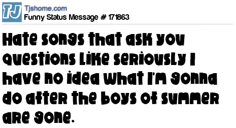 X says hate songs that ask you questions like seriously I have no idea what I'm gonna do after the boys of summer are gone.