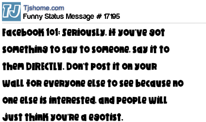X Facebook 101: Seriously, if you've got something to say to someone, say it to them DIRECTLY. Don't post it on your wall for everyone else to see because no one else is interested, and people will just think you're a egotist.
