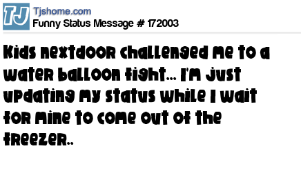X Kids nextdoor challenged me to a water balloon fight... I'm just updating my status while I wait for mine to come out of the freezer..