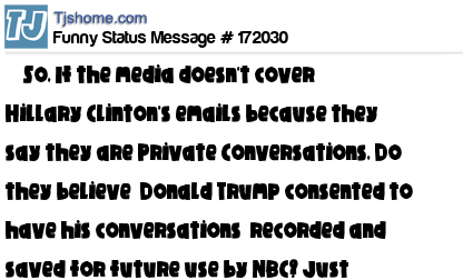 X says So, If the media doesn't cover Hillary Clinton's emails because they say they are Private Conversations, Do they believe Donald Trump consented to have his conversations recorded and saved for future use by NBC? Just wondering.