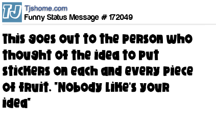 - # 104921 Hey, guy that puts the stickers on fruit....NOBODY likes you.