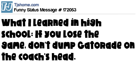 - # 189639 What I learned in high school: Don't dump Gatorade on your coach's head, especially if you lost the game.