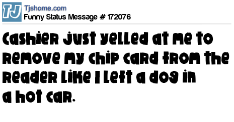 X says Cashier just yelled at me to remove my chip card from the reader like I left a dog in a hot car.