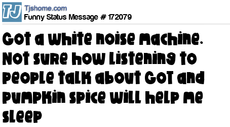X says Got a white noise machine. Not sure how listening to people talk about GoT and pumpkin spice will help me sleep