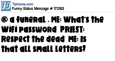 X says @ a funeral . ME: What's the WiFi password PRIEST: Respect the dead ME: Is that all small letters?