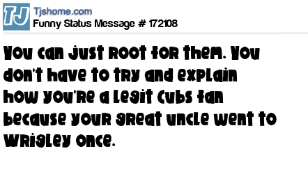 X says You can just root for them. You don't have to try and explain how you're a legit Cubs fan because your great uncle went to Wrigley once.