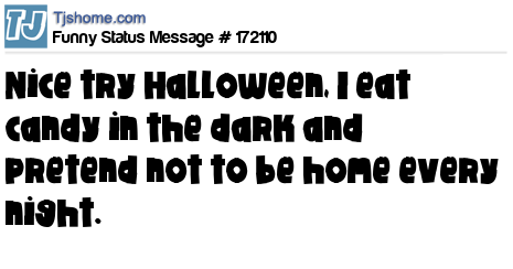 X says Nice try Halloween, I eat candy in the dark and pretend not to be home every night.