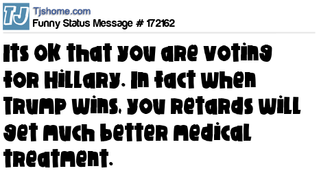 X says Its OK that you are voting for Hillary. In fact when Trump wins, you retards will get much better medical treatment.