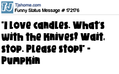 - # 77137 "Cool, I love candles. What's with the knives? Wait, stop. Please stop!" - pumpkin