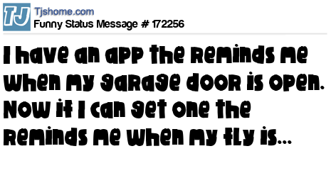 X says I have an app the reminds me when my garage door is open. Now if I can get one the reminds me when my fly is...
