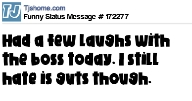 X says Had a few laughs with the boss today. I still hate is guts though.