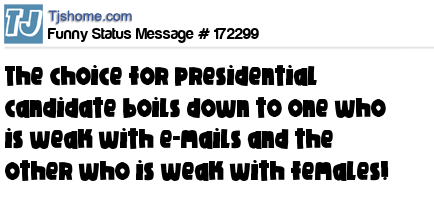 X says the choice for presidential candidate boils down to one who is weak with e-mails and the other who is weak with females!