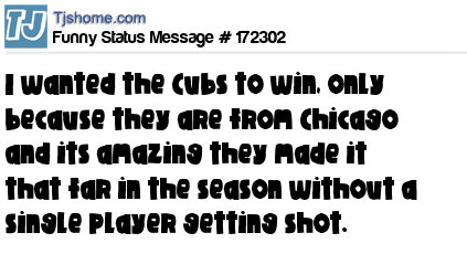 X says I wanted the Cubs to win, only because they are from Chicago and its amazing they made it that far in the season without a single player getting shot.