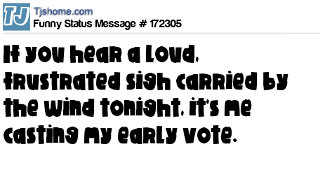 X says If you hear a loud, frustrated sigh carried by the wind tonight, it's me casting my early vote.