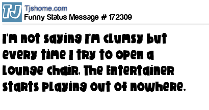 X says I'm not saying I'm clumsy but every time I try to open a lounge chair, The Entertainer starts playing out of nowhere.