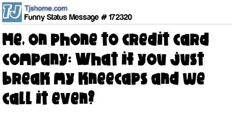 - # 207311 Me, on phone to credit card company: What if you just break my kneecaps and we call it even? thanks