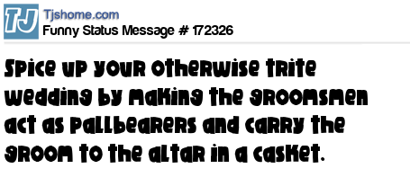 X says Spice up your otherwise trite wedding by making the groomsmen act as pallbearers and carry the groom to the altar in a casket.