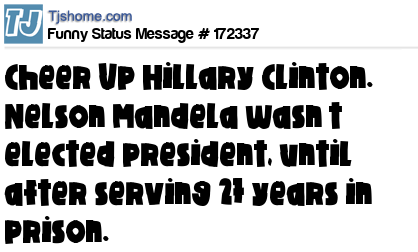 - # 163748 Look on the bright side, Hillary. Nelson Mandela did get elected president until after he'd served 27 years in prison.