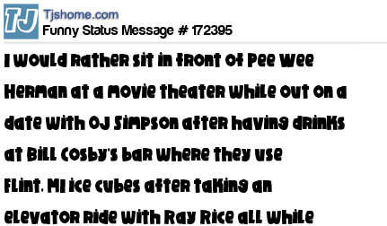 X is I would rather sit in front of Pee Wee Herman at a movie theater while out on a date with OJ Simpson after having drinks at Bill Cosby's bar where they use Flint, MI ice cubes after taking an elevator ride with Ray Rice all while Casey Anthony babysits.