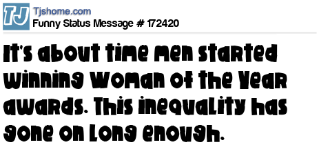 X says It's about time men started winning Woman of the Year awards. This inequality has gone on long enough.