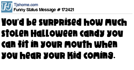 X says You'd be surprised how much stolen Halloween candy you can fit in your mouth when you hear your kid coming.