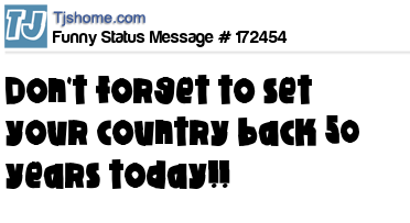 - # 115829 On Sunday, don't forget to turn your clocks back an hour. And on Tuesday, try not to set your country back 50 years...VOTE!!!