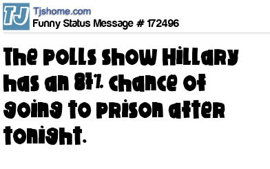 X The polls show Hillary has an 87% chance of going to prison after tonight.
