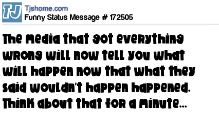 X says The media that got everything wrong will now tell you what will happen now that what they said wouldn't happen happened. Think about that for a minute...
