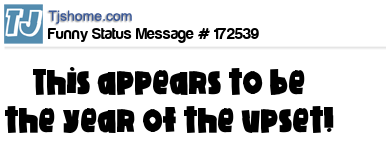 - # 50428 Decided to add upsets to my bracket this year. So far, I'm the only one that is upset.