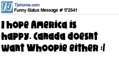 X says I hope America is happy. Canada doesnt want Whoopie either :/