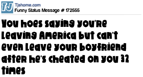 X You hoes saying you're leaving America but can't even leave your boyfriend after he's cheated on you 32 times