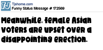 X says Meanwhile, female Asian voters are upset over a disappointing erection.