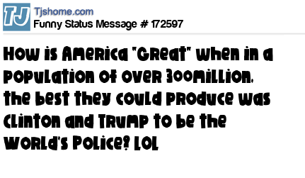 X says How is America "Great" when in a population of over 300million, the best they could produce was Clinton and Trump to be the World's Police? LOL
