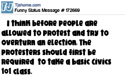 X says I think before people are allowed to protest and try to overturn an election, The protesters should first be required to take a basic Civics 101 class.